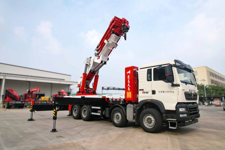 • Advanced design concept The design concept is advanced, the key components are imported from Europe, and the quality is reliable; advanced design tools are used, combined with virtual prototype tech-nologies such as 3D motion simulation and finite element analysis, and high-strength steel plates are used for lightweight design. The design standard is high, the international standard is implemented, and the reliability test is three times higher than the industry standard, reaching a service life of 200,000 times. • Excellent product performance Strong lifting performance, large working range and large outrigger span, to achieve a wider operating range; 10-15° negative boom angle, more flexible operation and stronger environmental adaptability; double four -link luffing mechanism, to achieve Larger luffing angle range and smooth peak torque output. • The ultimate exterior design The appearance of the whole machine conforms to the European style, with beautiful ap-pearance, compact structure and strong sense of strength: it adopts ergonomic design. • Rich extension interface Modular design, a variety of configurations can be freely combined according to custom-er requirements; the boom reserves a general expansion interface, which can meet the expansion needs of fixtures, auxiliary tools, fling libs etc.