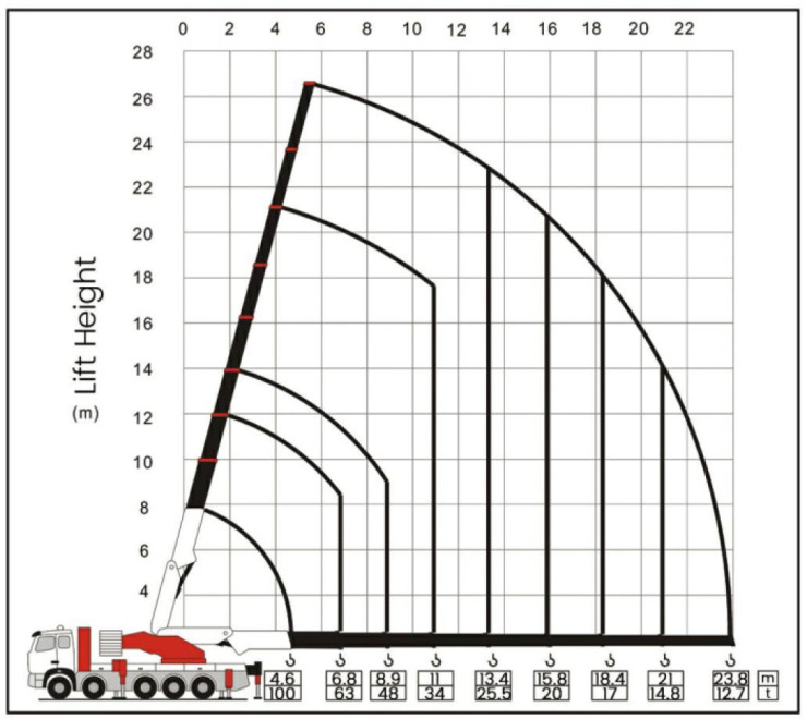 • Advanced design concept The design concept is advanced, the key components are imported from Europe, and the quality is reliable; advanced design tools are used, combined with virtual prototype tech-nologies such as 3D motion simulation and finite element analysis, and high-strength steel plates are used for lightweight design. The design standard is high, the international standard is implemented, and the reliability test is three times higher than the industry standard, reaching a service life of 200,000 times. • Excellent product performance Strong lifting performance, large working range and large outrigger span, to achieve a wider operating range; 10-15° negative boom angle, more flexible operation and stronger environmental adaptability; double four -link luffing mechanism, to achieve Larger luffing angle range and smooth peak torque output. • The ultimate exterior design The appearance of the whole machine conforms to the European style, with beautiful ap-pearance, compact structure and strong sense of strength: it adopts ergonomic design. • Rich extension interface Modular design, a variety of configurations can be freely combined according to custom-er requirements; the boom reserves a general expansion interface, which can meet the expansion needs of fixtures, auxiliary tools, fling libs etc.